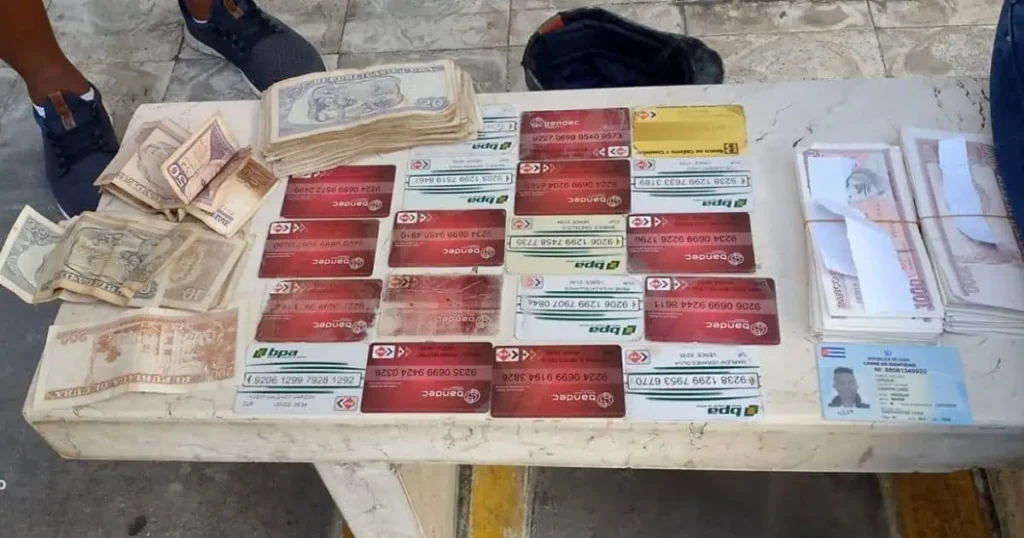 La policía ocupó más de 250 mil pesos cubanos en efectivo y varias tarjetas magnéticas vinculadas al negocio.