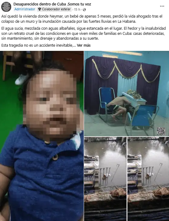 La comunidad del municipio habanero de El Cerro vive momentos de profundo dolor tras un trágico accidente que arrebató la vida a un bebé de apenas cinco meses. El hecho ocurrió cuando un muro de su vivienda colapsó repentinamente como consecuencia de las intensas lluvias que en los últimos días han golpeado la capital cubana.