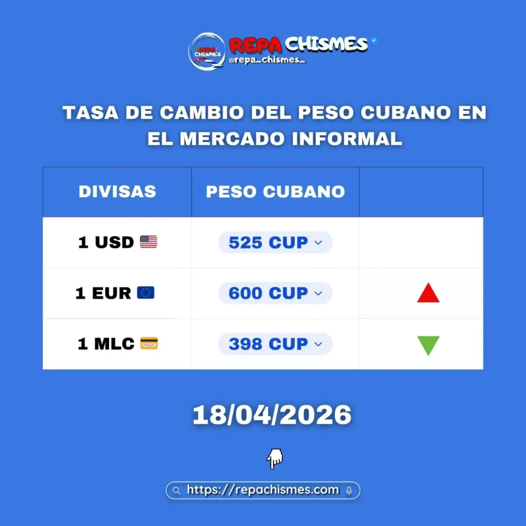 Mientras tanto, el dólar estadounidense se mantiene en 525 CUP, consolidando su propio techo histórico alcanzado días atrás. Por su parte, la MLC (Moneda Libremente Convertible) se cotiza en 397.5 CUP, sin variaciones bruscas en esta jornada.