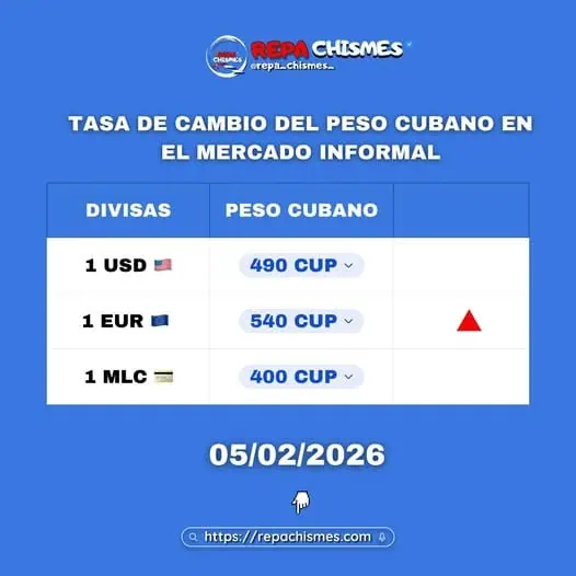 Mientras tanto, el dólar estadounidense amaneció sin variaciones y se mantiene en 490 CUP, una estabilidad relativa que contrasta con la volatilidad del euro. Por su parte, la Moneda Libremente Convertible (MLC) continúa anclada en 400 CUP, valor que se ha repetido de forma casi sistemática durante las últimas semanas.