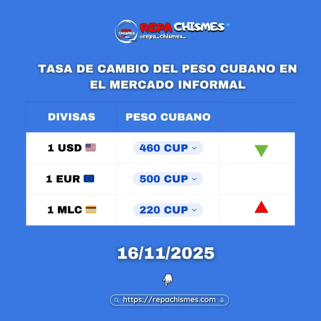De acuerdo con los valores publicados por la Tasa Representativa del Mercado Informal (TRMi), el dólar retrocedió hasta los 460 CUP, diez pesos menos que el día anterior. Este movimiento interrumpe la racha alcista que lo había llevado a recuperar 60 pesos en apenas una semana, luego de caer a 410 CUP a inicios de noviembre.