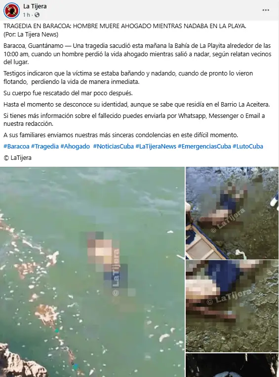 Desde este medio enviamos nuestras condolencias a sus allegados, amigos y familiares, que hoy enfrentan una pérdida inesperada y dolorosa. La comunidad de Baracoa se une en solidaridad ante esta lamentable noticia que vuelve a recordar la importancia de extremar precauciones al disfrutar del mar, incluso en zonas conocidas por los habitantes.