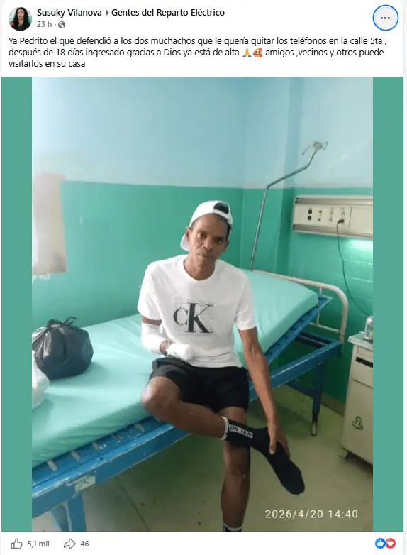La información fue dada a conocer inicialmente por la usuaria Susuky Vilanova en el grupo de Facebook “Gentes del Reparto Eléctrico”, quien confirmó que el joven ya se encuentra en su vivienda tras recibir el alta hospitalaria. Su publicación rápidamente generó reacciones entre vecinos y conocidos, quienes no tardaron en expresar apoyo, admiración y también preocupación por el aumento de este tipo de hechos en la capital.