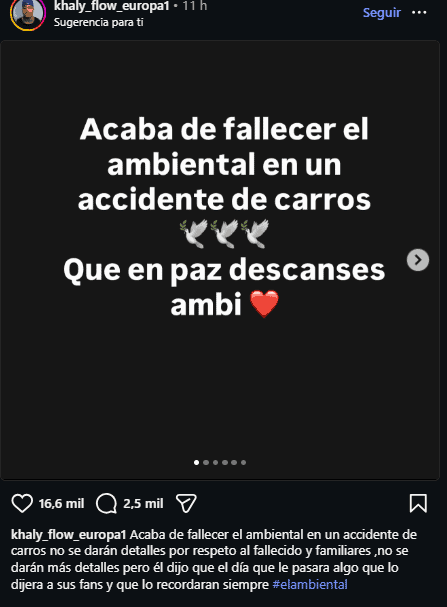 Todo comenzó tras la aparición de un post publicado en la cuenta de Instagram vinculada al influencer, donde se dejaba entrever una supuesta noticia relacionada con su fallecimiento. La publicación fue breve, sin explicaciones claras ni contexto, pero lo suficientemente impactante como para encender las alarmas entre seguidores, colegas y figuras del entretenimiento digital.