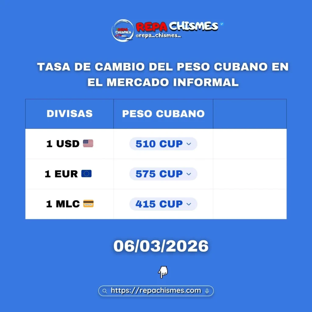 El dólar acumula una semana completa en torno a los 510 pesos cubanos, mientras el euro continúa posicionándose muy por encima, con una diferencia de aproximadamente 65 pesos más que la divisa estadounidense. La MLC, utilizada principalmente para operaciones comerciales dentro de tiendas estatales, mantiene también su cotización estable.