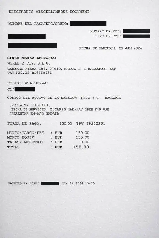 El cargo adicional reportado por pasajeros ronda los 150 euros por pieza.