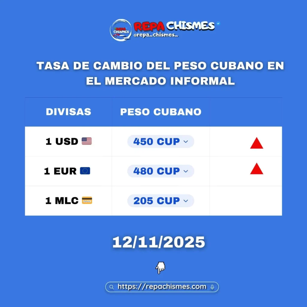 Según las tasas más recientes observadas en los intercambios informales, el dólar estadounidense (USD) se está moviendo alrededor de 450 pesos cubanos (CUP), mientras que el euro (EUR) ya alcanza los 480 CUP. La Moneda Libremente Convertible (MLC), por su parte, se mantiene firme en 205 CUP.